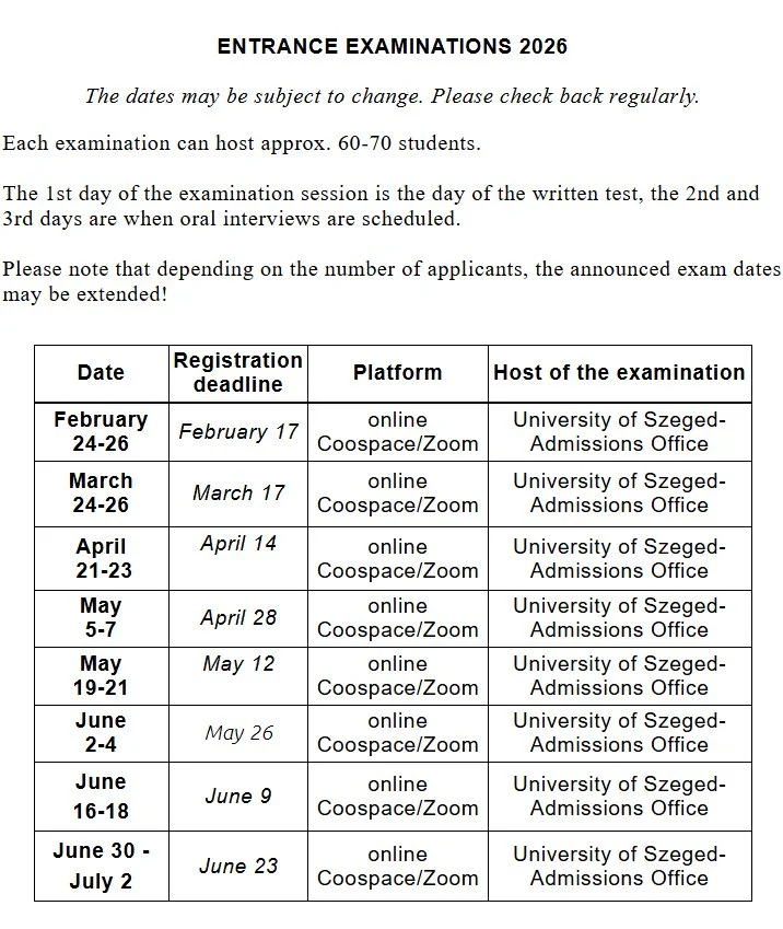 2023 yılı Szeged Üniversitesi Giriş sınavları